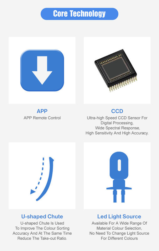 Entonces, ¿cómo exactamente puede el clasificador de colores Wenyao ayudar a su negocio? Automatizando el proceso de clasificación, puede reinvertir tiempo y dinero en el crecimiento de su negocio. Además,la mejora de la eficiencia y el flujo de trabajo en su línea de producción significa que puede tomar más pedidos y ampliar su alcance.