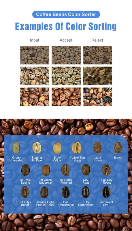 El clasificador de color de granos de café Wenyao está diseñado específicamente para la clasificación de granos de café y puede eliminar automáticamente una serie de defectos, incluyendo los cuáqueros, granos quemados, daño por insectos, daño por agua,el patioEl resultado es un proceso más eficiente y simplificado que ahorra tiempo y recursos al tiempo que mejora la calidad del producto final.